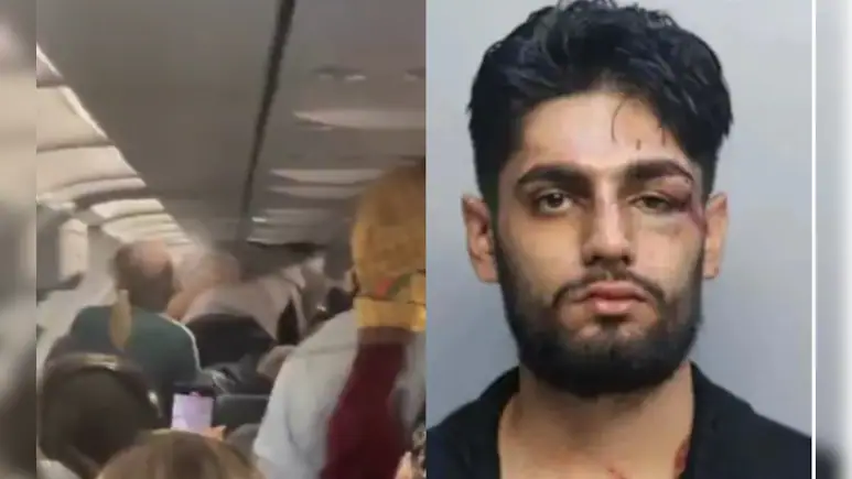 An Indian-origin man has been arrested for allegedly attacking his co-passenger during a flight from Philadelphia to Miami. A video that has gone viral shows Ishaan Sharma, 21, a resident of Newark, and Keanu Evans involved in a fight on a Frontier Airlines flight on June 30.