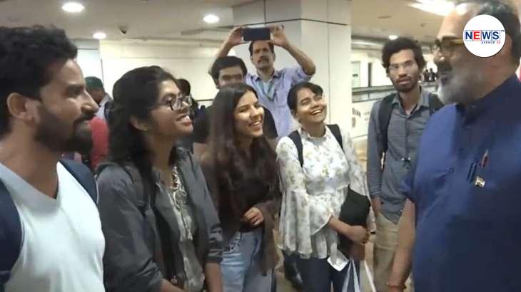 #WATCH | Delhi: Union Minister Rajeev Chandrasekhar interacts with the Indian nationals evacuated from Israel pic.twitter.com/itSzrwY4OD