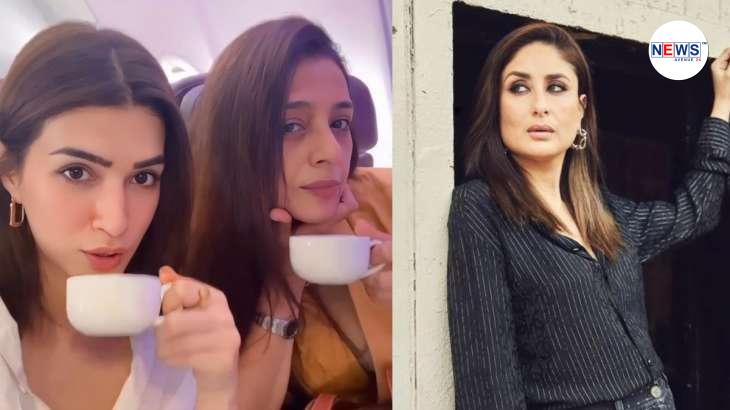 Tabu-Kriti Sanon fly to Goa for ‘The Crew’ shoot, bond over chai; Kareena Kapoor has ‘biscuit’ reply