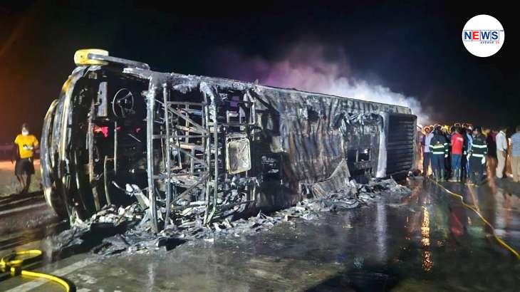 The bus was travelling from Nagpur to Pune when it met with an accident at around 1:30 am. The driver said that the accident took place after a tyre burst, leading to flames in the bus. Later the diesel tank of the vehicle caught fire. There are 3 children among those who died… pic.twitter.com/zqnNgEpbSj