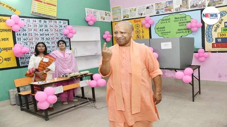 UP CM Yogi Adityanath poses after casting his vote